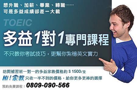 坊間補習班一對一的多益家教價格貴,Hi家教只收一半不到的價格,給你更多更棒的選擇